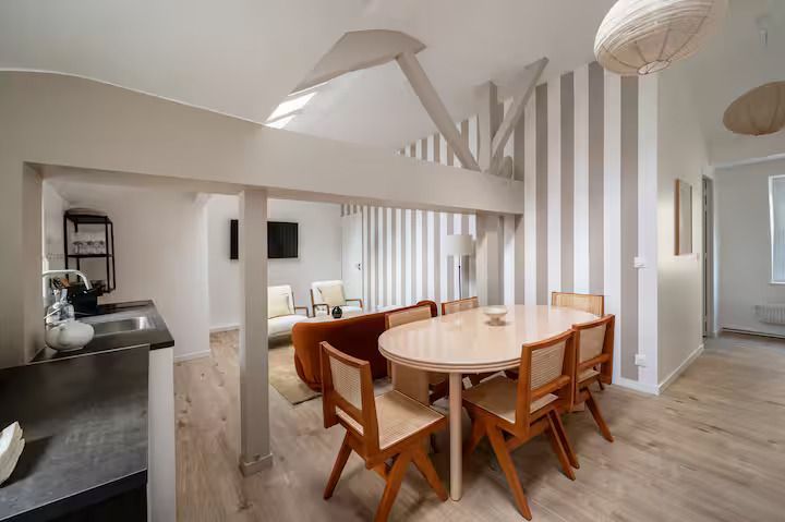 The kitchen and bathrooms are equipped with everything you need for your comfort. An incomparable experience in the heart of Paris.