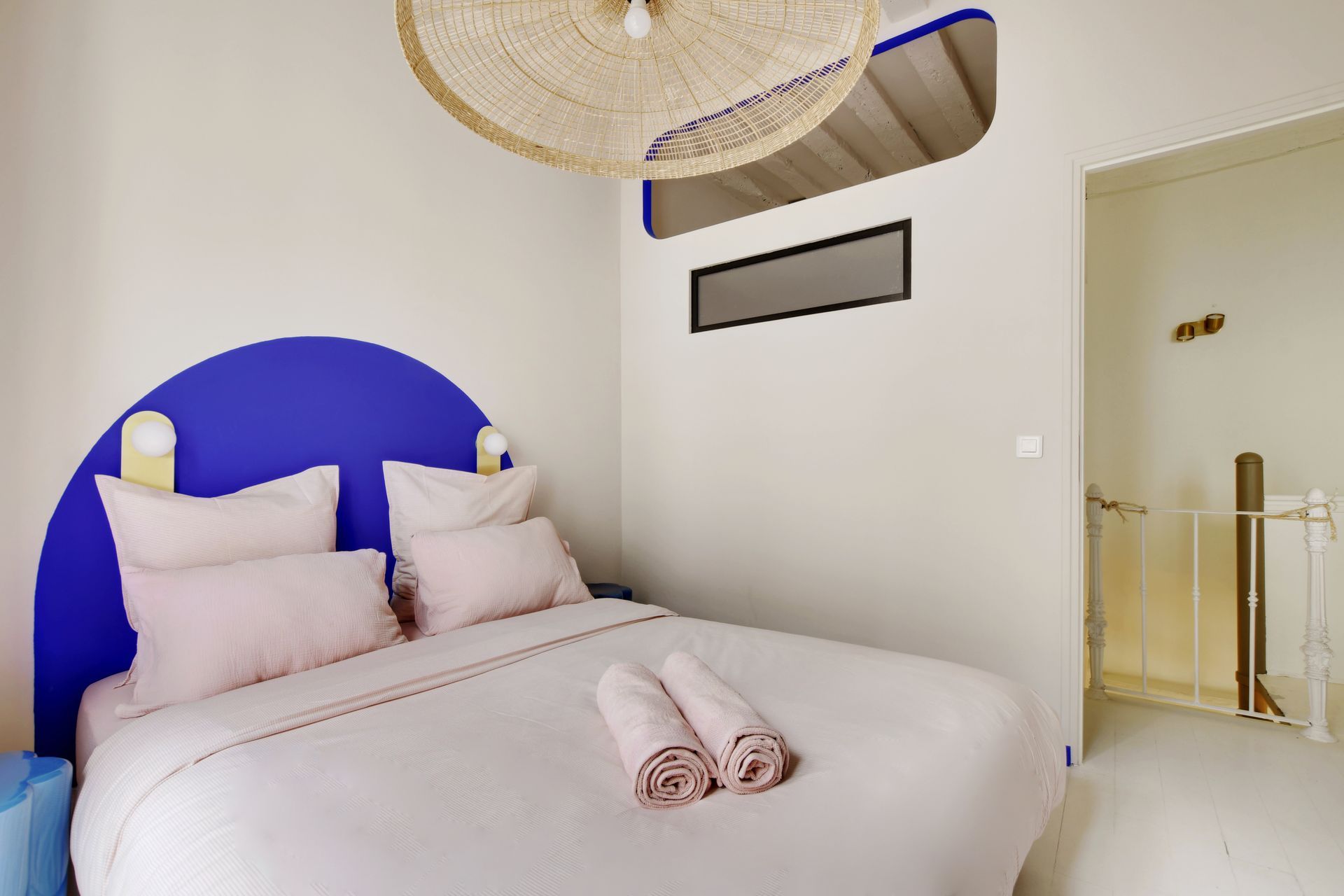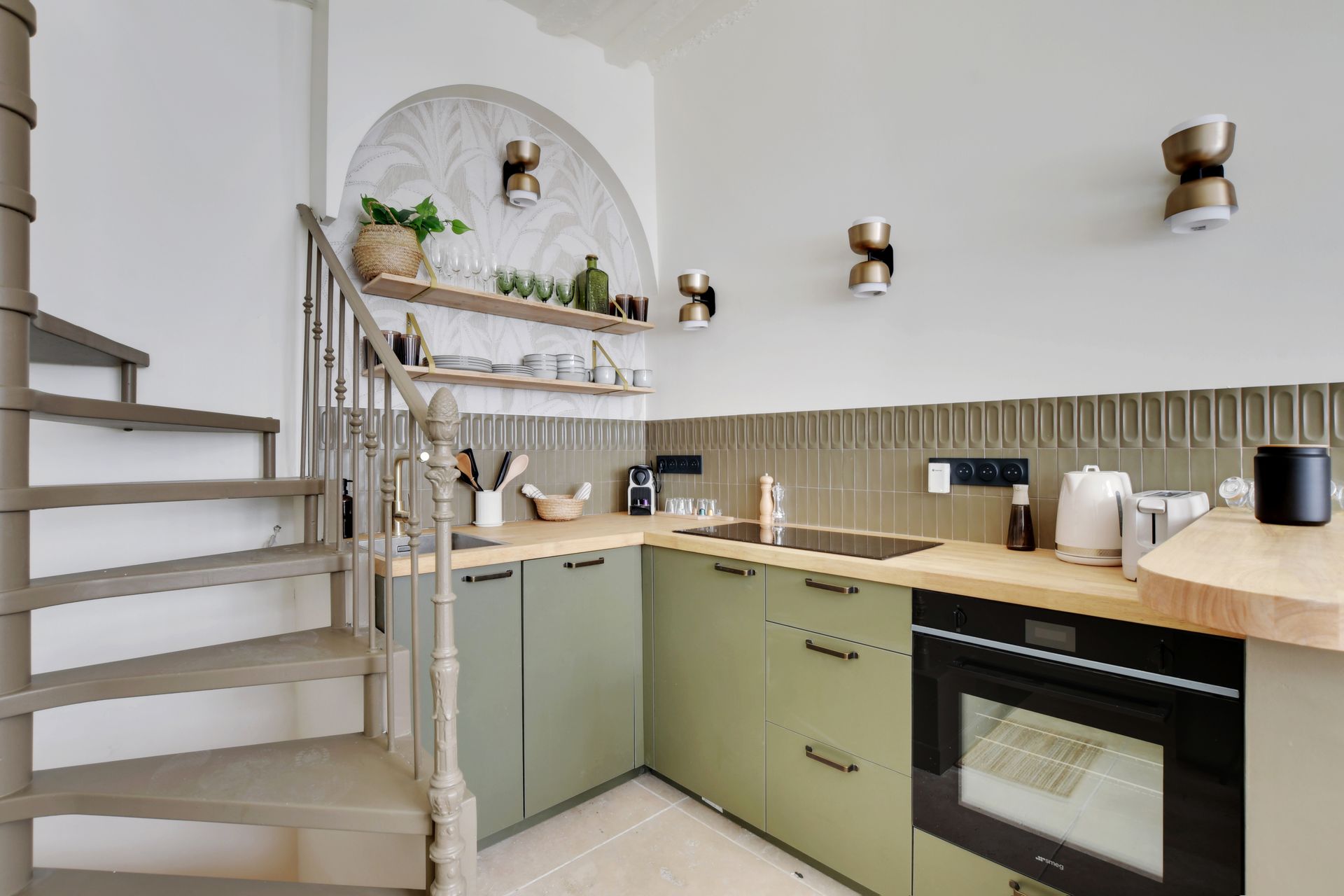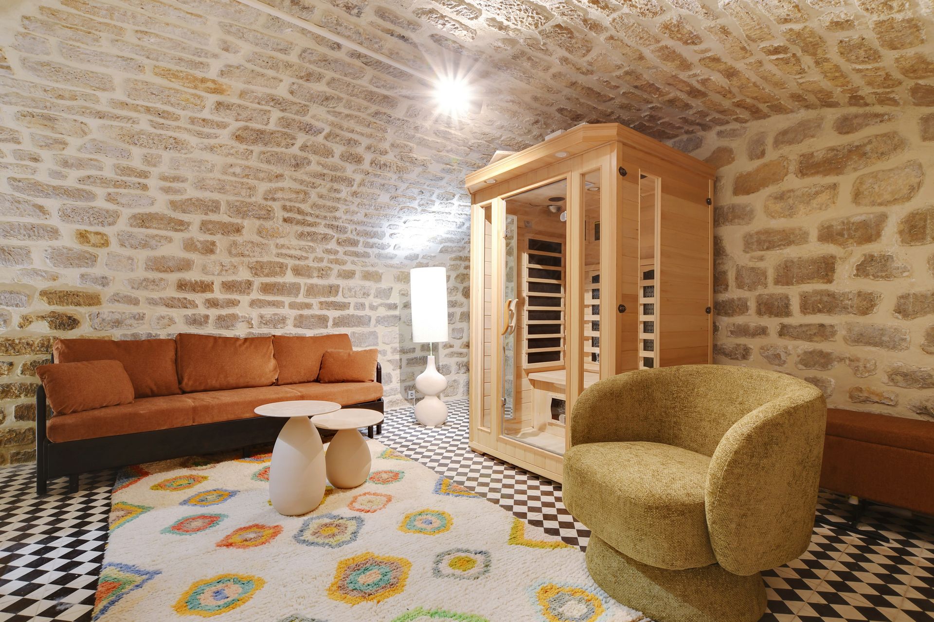 Like a ‘house’ on 3 floors. Design with 2 bedrooms, 2 double beds, a sofa bed, 2 bathrooms/2WC and a sauna. Ideally located in the heart of the vibrant Marais district of Paris. Just a short walk from Rue de Turenne and Rue de Rivoli, you can enjoy all the attractions of Paris on foot. The comfortable, stylish and functional layout of this flat, which can accommodate up to 6 people, will delight you during your stay in Paris with family or friends.