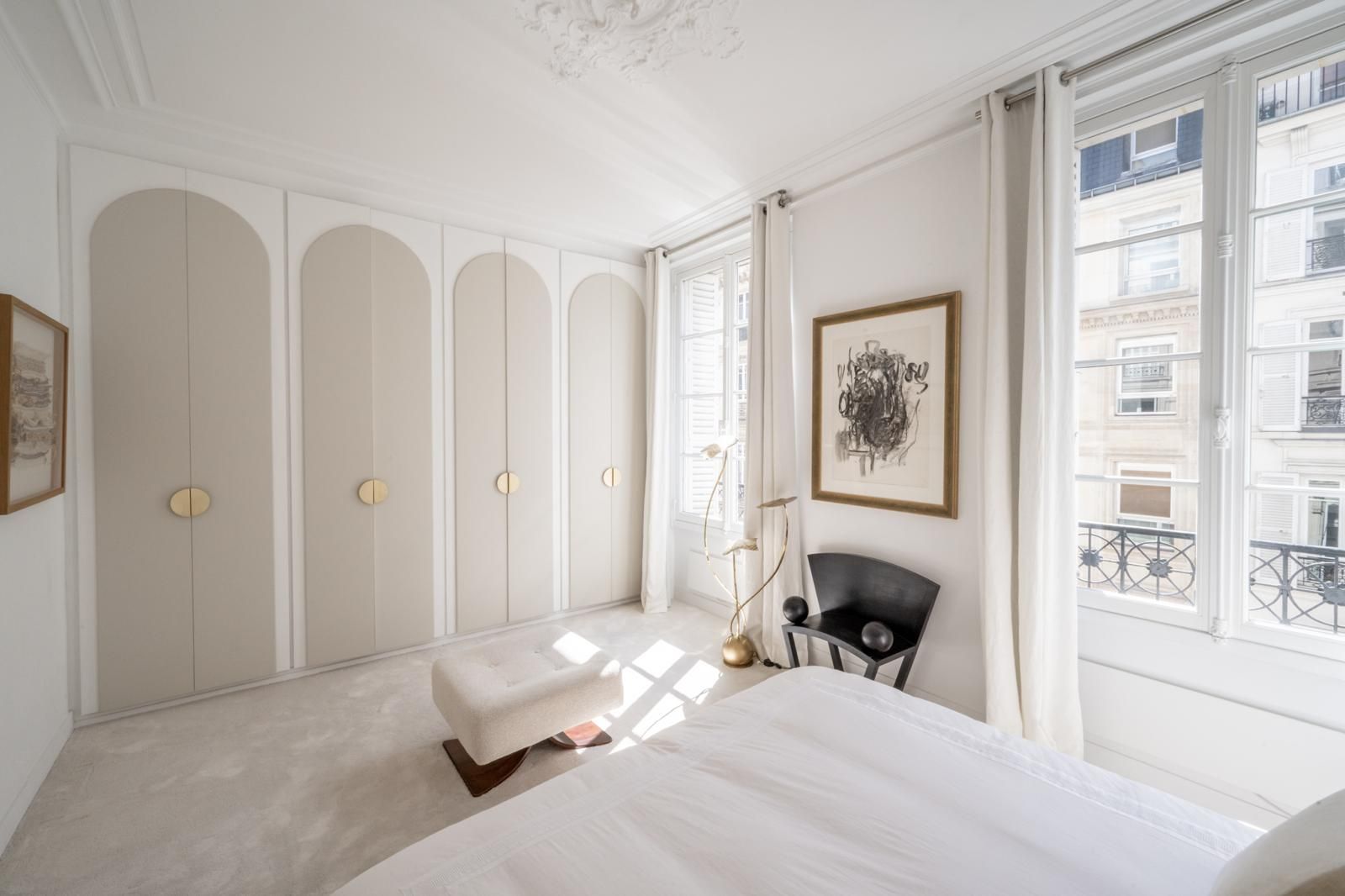 Elegant 100m² Parisian apartment, completely renovated by a renowned architect in the heart of Paris. It is located on Rue du Faubourg Saint Honoré, famous for its luxury hotels (Sofitel, Bristol) and high-end shops, just a 5-minute walk from the Champs-Élysées and the Arc de Triomphe. Very quiet and bright. High-end decor and furnishings.