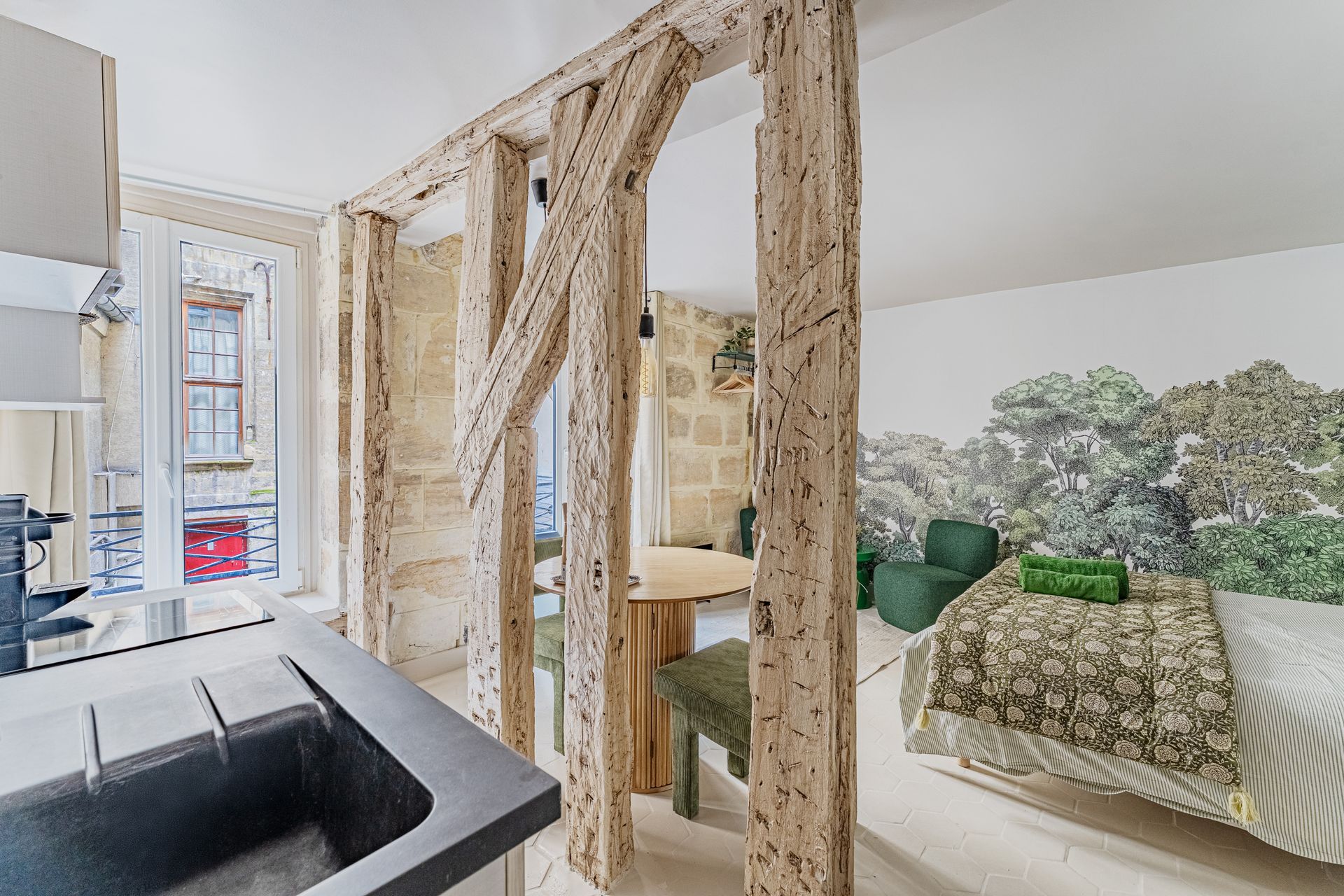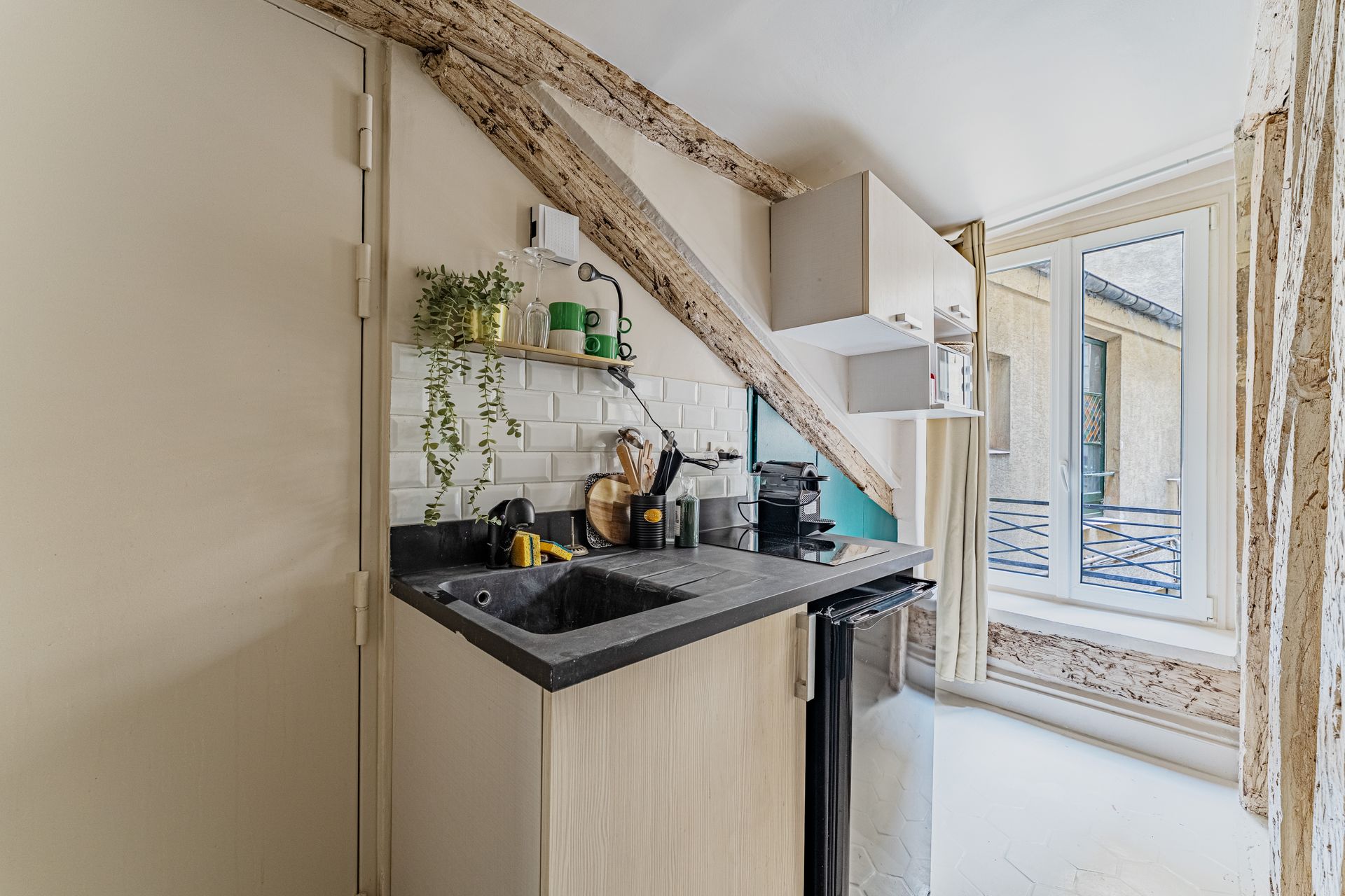 Located in the heart of Paris’s historic Latin Quarter, just steps from the magnificent Notre-Dame Cathedral, this charming flat on rue Saint-Séverin offers an authentic Parisian experience. Nestled among cobblestone streets, lively cafés, and centuries-old architecture, it’s the perfect place to feel the city’s timeless spirit.