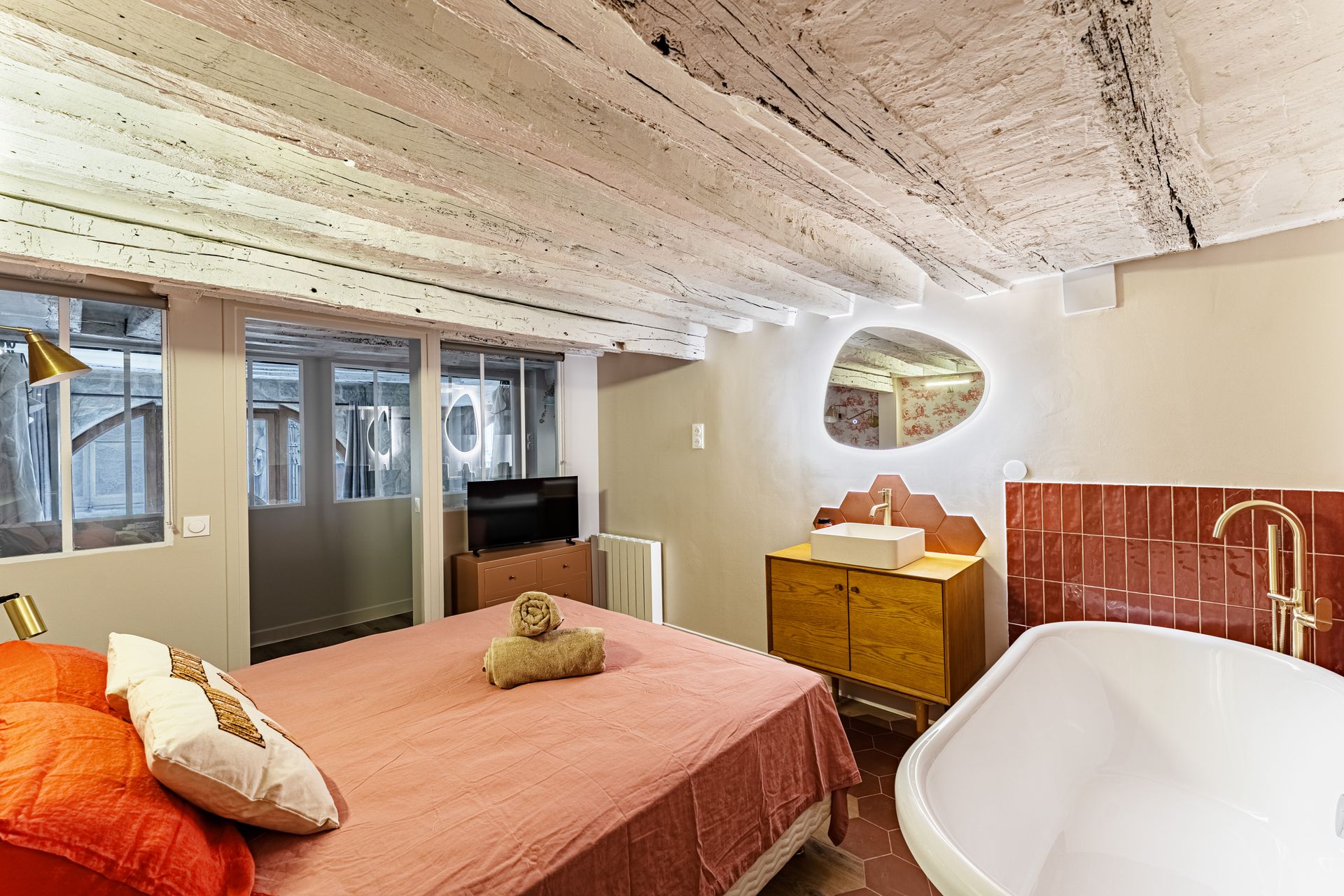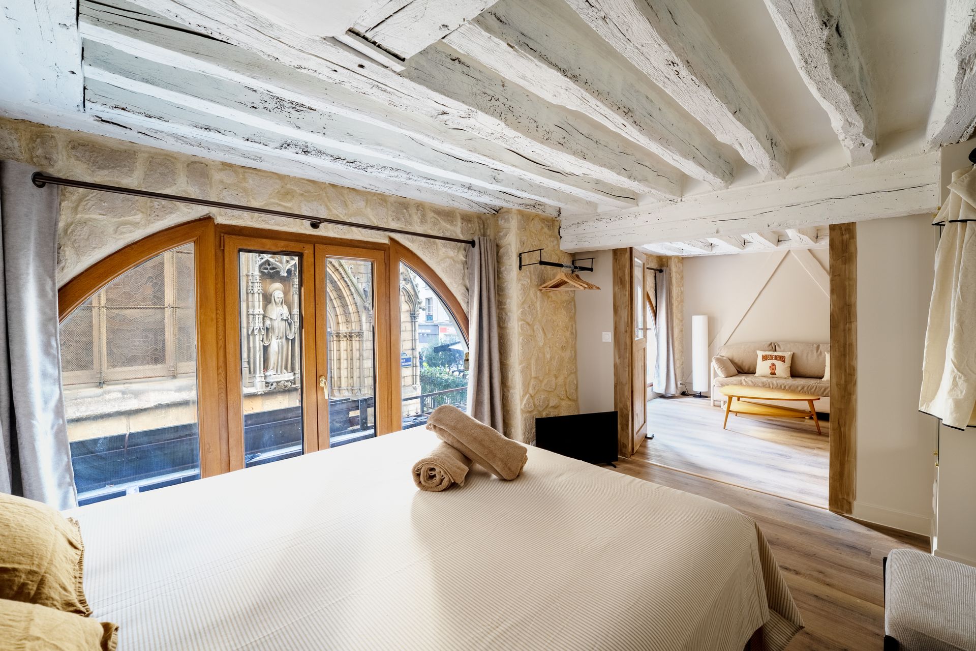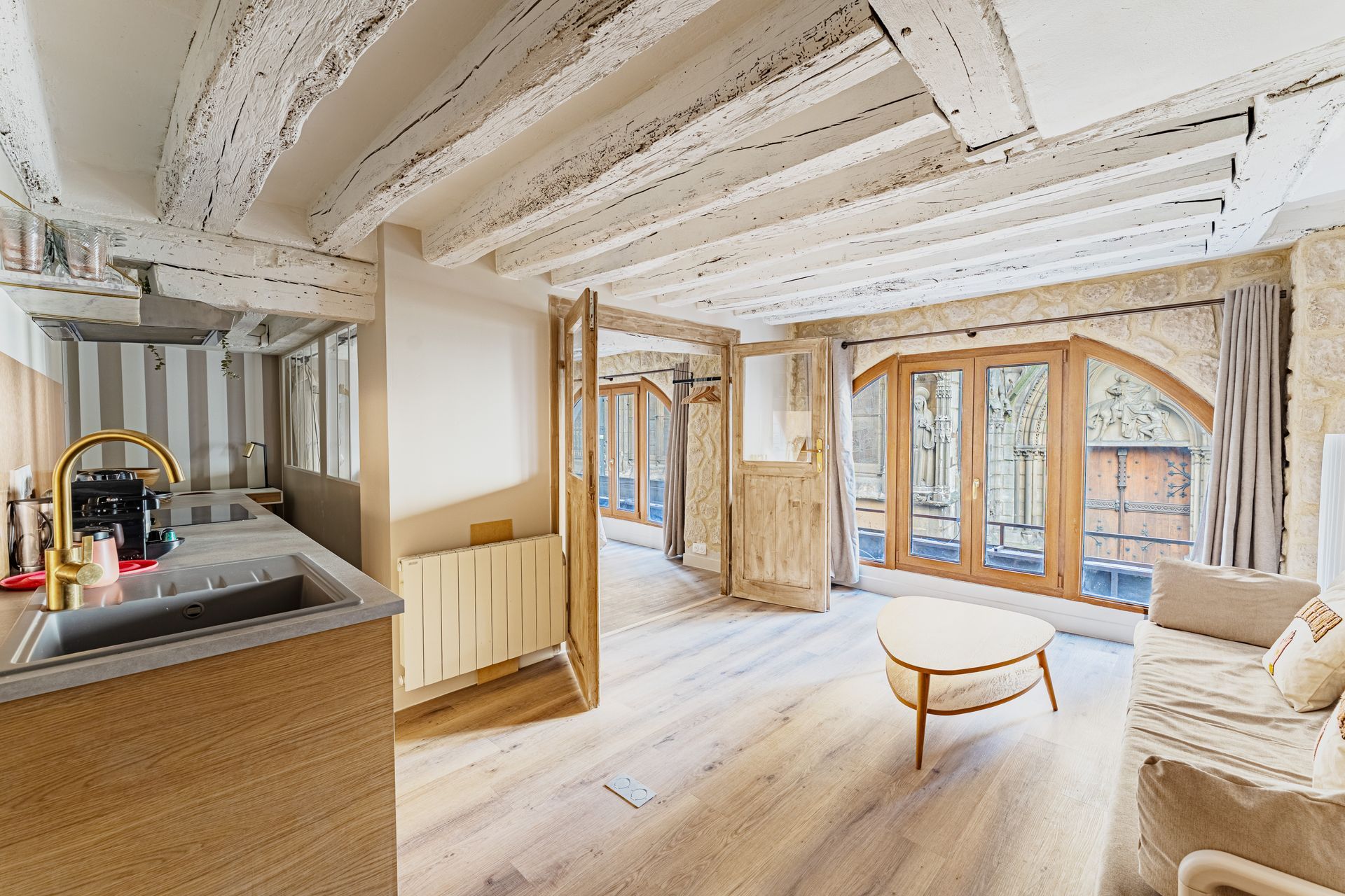 Located in the heart of Paris’s historic Latin Quarter, just steps from the magnificent Notre-Dame Cathedral, this charming flat on rue Saint-Séverin offers an authentic Parisian experience. Nestled among cobblestone streets, lively cafés, and centuries-old architecture, it’s the perfect place to feel the city’s timeless spirit.
